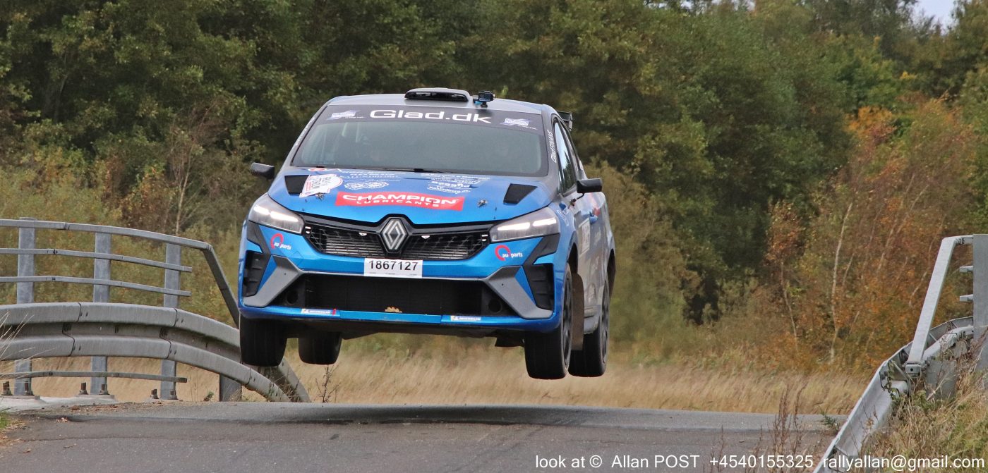 Carsten Jensen og Michael Fasterholdt i Renault Clio Rally3 kørte andenpladsen hjem i DM regi, og blev totalt set 9’er generelt i rallyet. Og det med en dårlig tid på SS5 (spændebånd til turboen) og en snurretur på SS12, der var rå attack, men de to ’forhindringer’ på SS5 og 12 ødelagde helhedsindtrykket på dagen.
