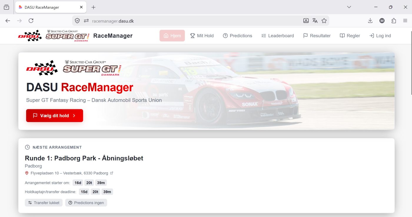 Du kender det fra Formel 1. Du kender det fra fodbold. Managerspillet, hvor du kan bruge din indsigt og forventninger til at sætte dit helt eget hold, der er så meget bedre end de hold, dine venner sammensætter. Nu kommer det også til dansk bilsport, hvor Dansk Automobil Sports Union og Selected Car Group Super GT-serien har skabt DASU RaceManager.