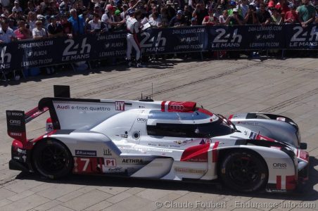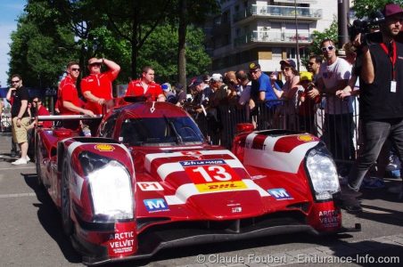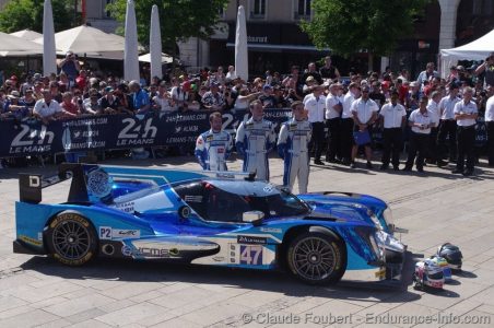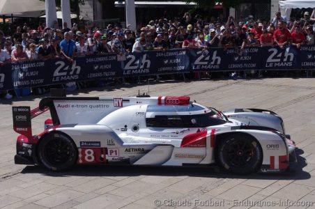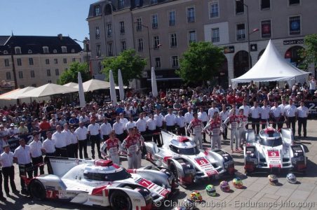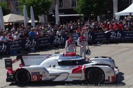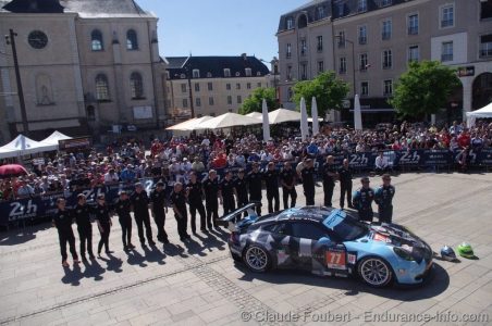 Place de la République danner, midt i Le Mans by,igen i år rammen om teknisk kontrol til 24 timers løbet på Le Mans.