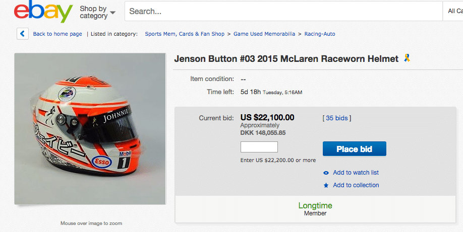 Jenson Buttons hjelm på auktion 2015